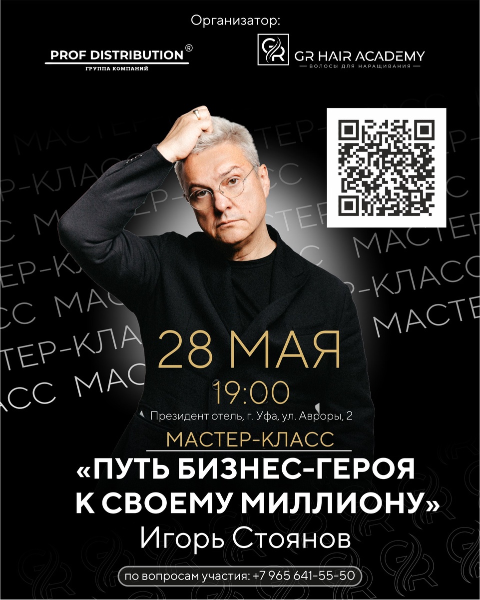 ✨ ВАЖНОЕ ОБЪЯВЛЕНИЕ ДЛЯ ЦЕНИТЕЛЕЙ КРАСОТЫ И БИЗНЕСА! Приглашаем вас на эксклюзивный мастер-класс от Игоря Стоянова — гуру бьюти-индустрии! 📅 Дата: 28 мая 📍 Место:Уфа, Президент Отель (ул. Авроры, 2), зал «Парламент» ПОЧЕМУ ЭТО НУЖНО ИМЕННО ВАМ? ✅ Игорь Стоянов — создатель сети салонов «Персона», «Бьюти Парк», бренда косметики HARDY, автор пяти книг-бестселлеров. Его стратегии изменили тысячи бизнесов! ✅ Живое общение с титулованным экспертом: задавайте вопросы и получайте персональные рекомендации. ЧТО ВАС ЖДЁТ: 🔥 Практические кейсы — от запуска салона до масштабирования бренда. 🔥 Тренды-2025 — инновации в технологиях, уходе и маркетинге. 🔥 Нетворкинг — знакомства с лидерами рынка и потенциальными партнёрами. 🔥 Панельная дискуссия — прогнозы будущего индустрии от топ-спикеров. ВАШИ ВЫГОДЫ: • Секреты монетизации в эпоху конкуренции. • Доступ к закрытым знаниям и инструментам. • Импульс для роста — личного и профессионального. 🚨 Регистрация ОТКРЫТА, но места ограничены! Не упустит
