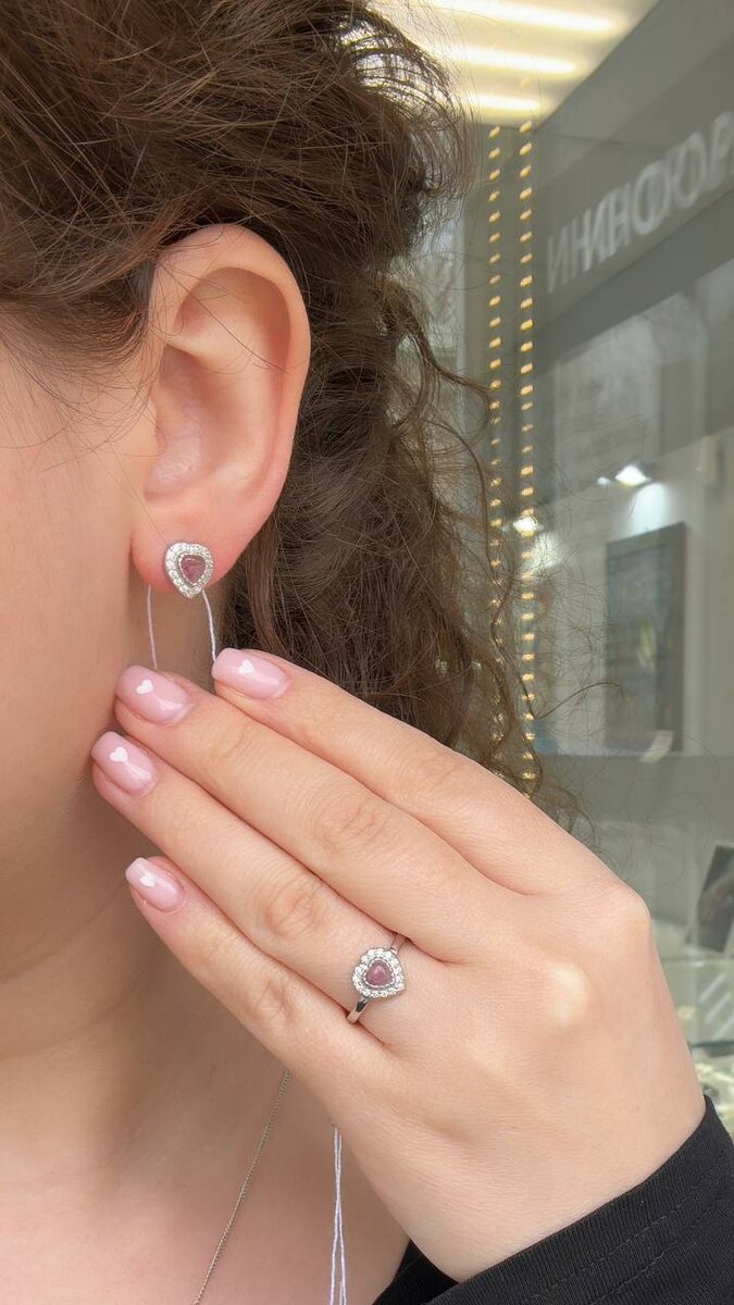 Показываю на ушке наши новые турмалиновые сердечки на гвоздиках 💓 💍 Серебро 925, белый родий, винтовой замок 💎 натуральные турмалины Сделали такие комплекты с фианитами и без 🥰 ✨ Цена: — серьги = 3200₽ — кольца = 2600₽ Оформить заказ можно в личных сообщениях 👉🏼 @okstetatet, остерегайтесь мошенников - мы никогда не пишем первыми!