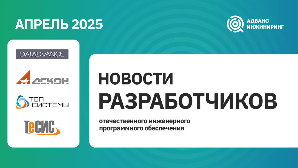 ► DATADVANCE рассказал о нововведениях в AppsHub версии DT Enterprise 2025.02 и опубликовал материал по интеграции FlowVision и КОМПАС-3D в DT Seven на примере оптимизации коллектора ► АСКОН приглашает на открытое тестирование КОМПАС-3D v24 и до 9 мая принимает заявки на Всероссийский конкурс по 3D-моделированию ► Топ Системы приглашают 22 мая на Форум T‑FLEX PLM 2025 ► ТЕСИС проводит 30 мая Форум «День FlowVision 2025 на Неве» ► Подобрать инженерное программное обеспечение для решения ваших задач помогут специалисты Адванс Инжиниринг. Сформированный банк расчетных методик и опыт внедрения позволит осуществить бесшовный переход на отечественное ПО.