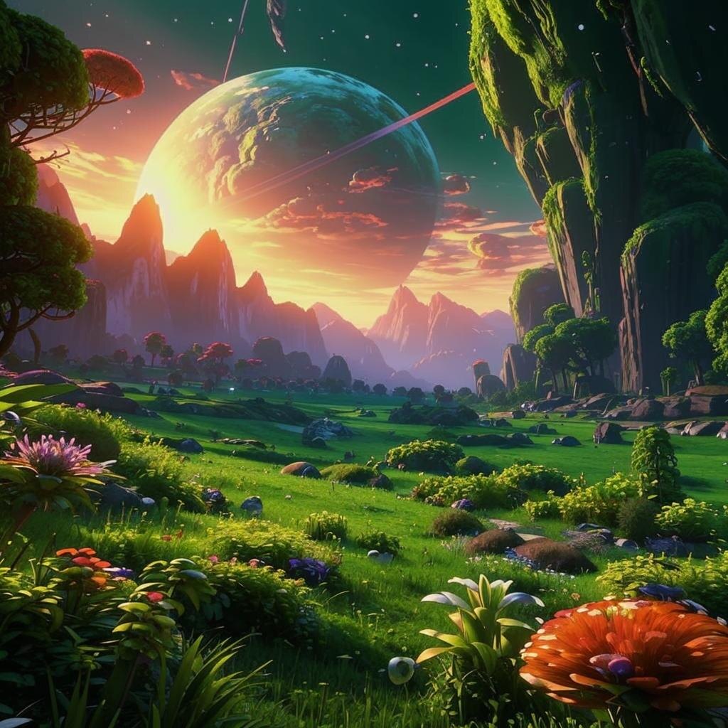 Сколько длился полёт, мгновение или вечность – Людмила не смогла бы сказать. Когда шар приземлился, она увидела мир, непохожий ни на что, виденное ею ранее. Небо было окрашено в оттенки розового и синего, воздух звенел тихой музыкой, а земля под ногами была мягкой, как бархат украшенная невиданной красоты цветами.