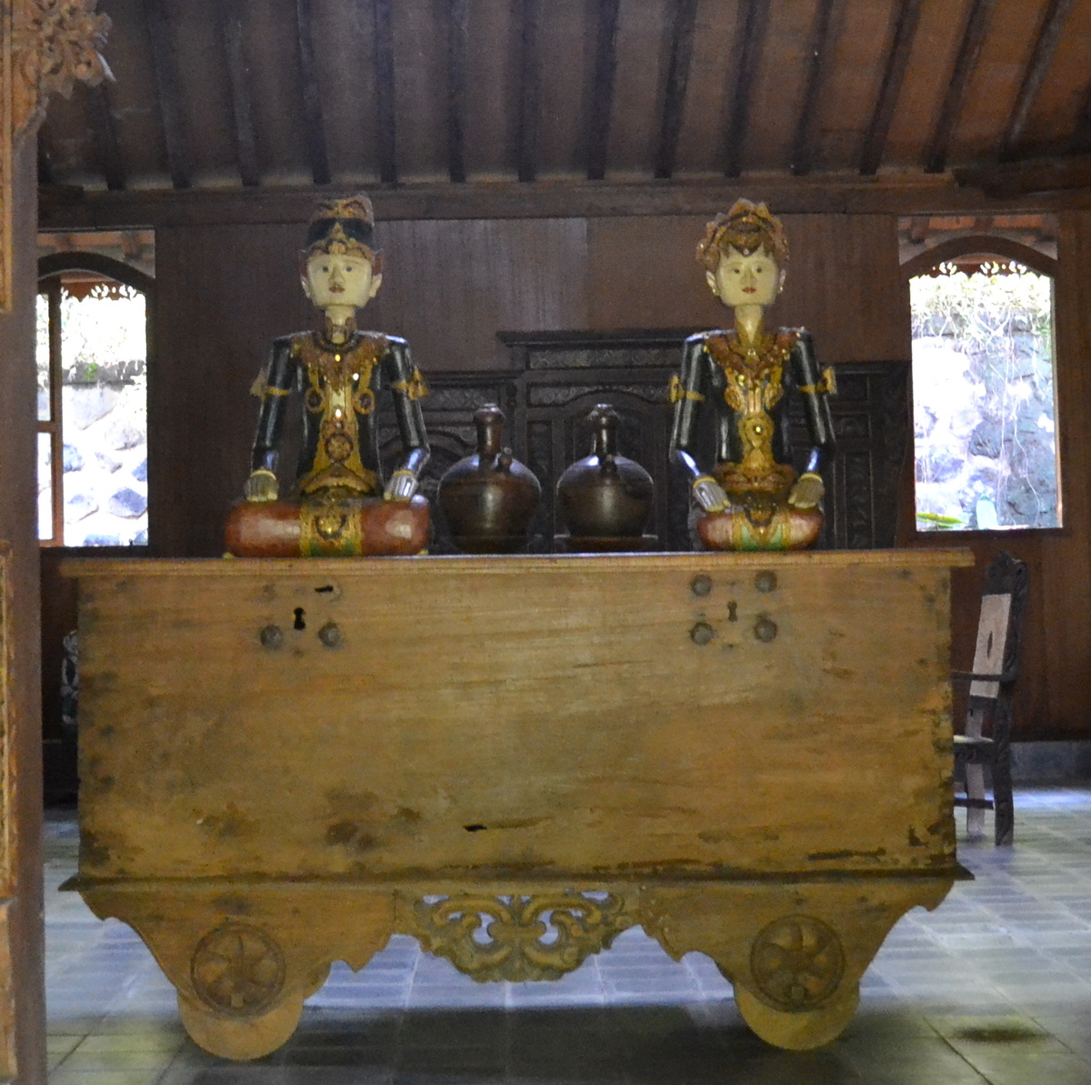 Храмы на океане стали последним нашим посещённым местом на острове. Но сначала пару слов о домах в этнодеревне-парке Таман Нуса. Самым красивым домом оказался богатый яванский дом сделанный из тика!Он весь был в потрясающей резьбе!Всегда поражаюсь какие есть люди-умельцы!Тик меньше всего подвержен гниению,поэтому его используют для строительства в странах с влажным климатом. Это даже не резьба,а ажурное произведение исскуства,ей-богу.Кружева по дереву!Я должна вам это показать)Внутри мебель и разные фигурки. А на крылечке сидела девушка с вышиванием. Здесь же в парке установлены статуи премьер-министра Мада,президента Сукарно и вице-президента Хатта. Есть тут и свой театр,где можно посмотреть представления.Куколки выглядят необычно для нас,они все такие носатые)Называются они "ваянг",что и означает кукла,фигурка.Без таких кукольных представлений не обходится ни один праздник в деревне.Обычно играют сцены из индийских эпосов.Ну и мы немного посмотрели) В парке есть музей ,выставка