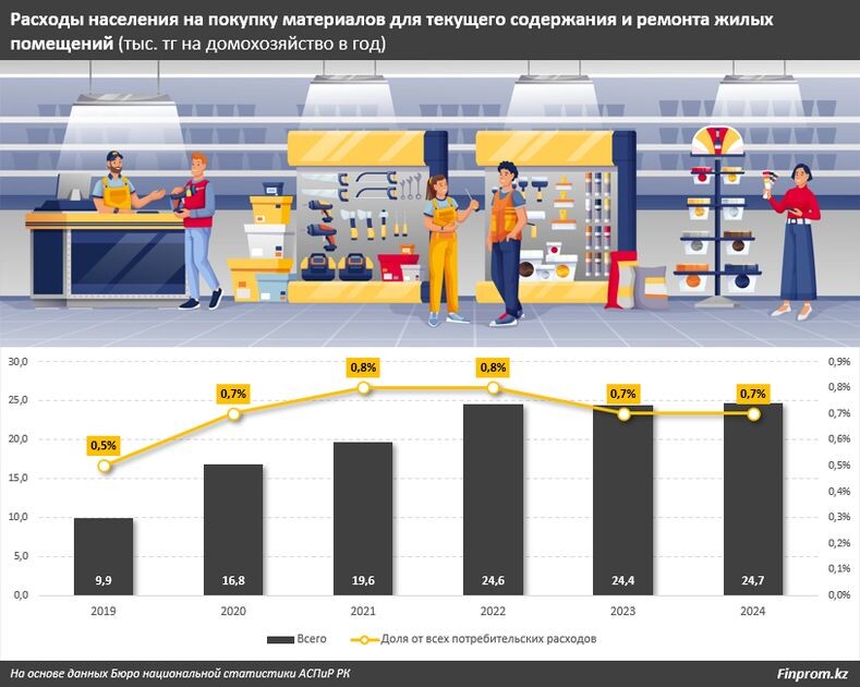 Сколько тратят казахстанские семьи на стройматериалы для ремонта жилья
