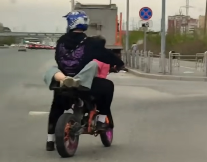 Тюменские подростки придумали интересный способ катания на мотоцикле