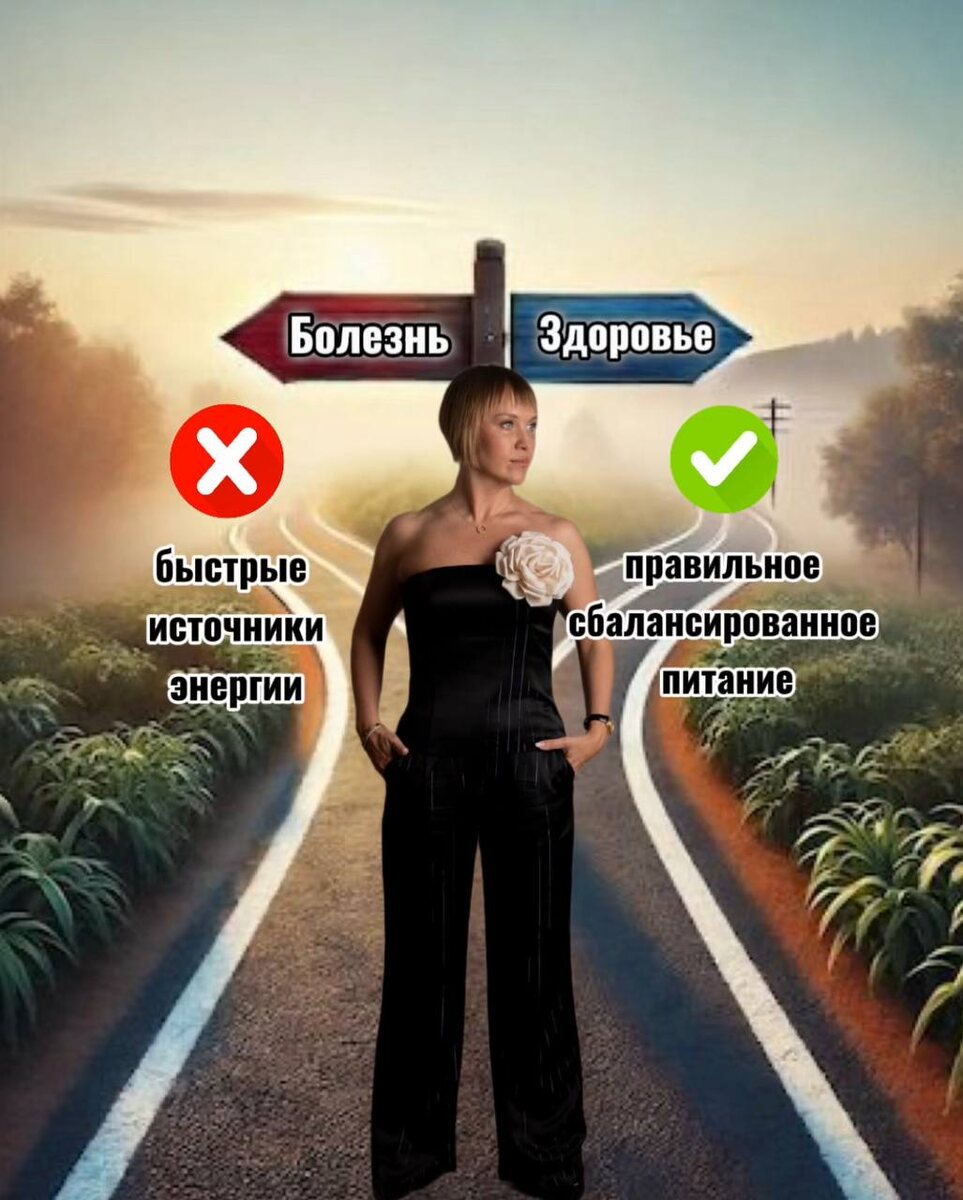 📍Направо пойдешь - здоровье обретешь, налево пойдешь - здоровье потеряешь. Или когда тебе немного за 3️⃣0️⃣, а сил и энергии хватает только на работу, а вечером уже нет сил ни на спорт, ни на ребенка, не на близость с мужем/супругой, чувствуешь себя как выжатый лимон и одно лишь желание - «доползти» до кровати. И вот вы скажете: Да все люди так живут. А как иначе? Работа забирает все силы. ❕Только вот на самом деле - такая усталость от тяжелого графика работы или декрета, когда некогда нормально поесть или ты перебиваешься булочками или шоколадками, приводит к достаточно плачевным последствиям…отсутствию эмоциональной близости с ребенком, с которым нет сил играть и сполна погружаться в его жизнь, а также к рискам измен/разводов/жизни как соседи, потому что сил на хороший секс у вас почти нет, к вечеру ваша батарейка 🔋 уже разряжена почти до нуля. В такие моменты мы начинаем искать быстрые источники энергии: ➖кофе или энергетики; ➖начинаем пить элькарнитин или мильдоний; ➖ «глуш
