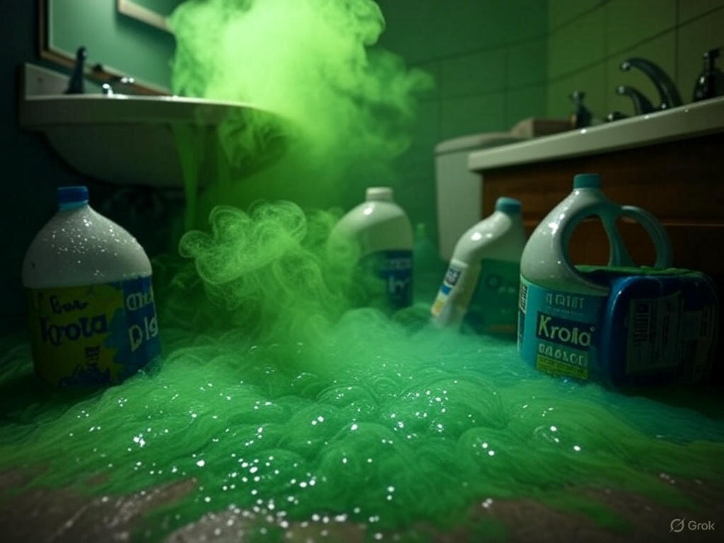На прошлой неделе я чуть не эвакуировал весь дом из-за уборки. Знаете, что случилось? Я просто хотел прочистить трубы "Кротом" и добавил отбеливатель для "пущего эффекта". Через минуту ванная превратилась в газовую камеру. Сегодня расскажу, как обычная химия становится оружием — и почему это касается каждого, у кого есть раковина. Представьте, что вы смешиваете колу и ментос. Бум! Зрелищно, но безопасно. Но в ванной вместо шипучки получится газ, который травил солдат в Первую мировую. Да, ваш "Крот" и отбеливатель — это скрытые химические реактивы, живущие под одной крышей с вами. Многие из нас делают это почти инстинктивно: если одно средство хорошо справляется с грязью, то два вместе должны работать вдвое эффективнее, верно? Но химия не арифметика. Здесь 1 + 1 может равняться «вызову скорой» или даже хуже. В 1915 году немцы применили хлорный газ под Ипром — погибли тысячи. А всё потому, что хлор вытесняет кислород из лёгких, вызывая мучительное удушье. И знаете, что выделяется при см