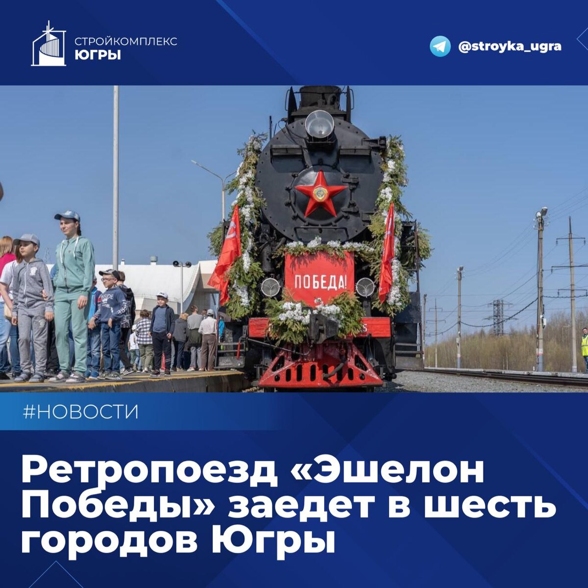 Ретропоезд «Эшелон Победы» заедет в шесть городов Югры Ранее мы сообщали о том, что передвижной музей на колесах прибудет в Сургут. Отличные новости и для жителей других городов округа — стало известно расписание «Эшелона Победы», который уже курсирует по всей России. В списке 6 югорских городов: 📍 Югорск. 9 мая с 9:00 до 12:00 📍 Советский. 9 мая с 12:30 до 15:00 📍 Нягань. 10 мая с 12:00 до 14:00 📍 Сургут. 17 мая с 13:00 до 18:00 📍 Нижневартовск. 18 мая с 12:00 до 16:00 📍 Когалым. 19 мая с 12:00 до 15:00 Напомним, ретропоезд на паровозной тяге запустила Свердловская железная дорога. «Эшелон Победы» состоит из 17 экскурсионных отреставрированных вагонов. В каждом — тематический выставочный зал, посвященный отдельной странице Великой Отечественной войны. Например: вагон-санпропускник, вагон-электростанция, вагон-кухня и другие. ▶️ В этом году в состав поезда включили дополнительные вагоны: бронеплатформу легендарного бронепоезда «Свердловский железнодорожник», меди