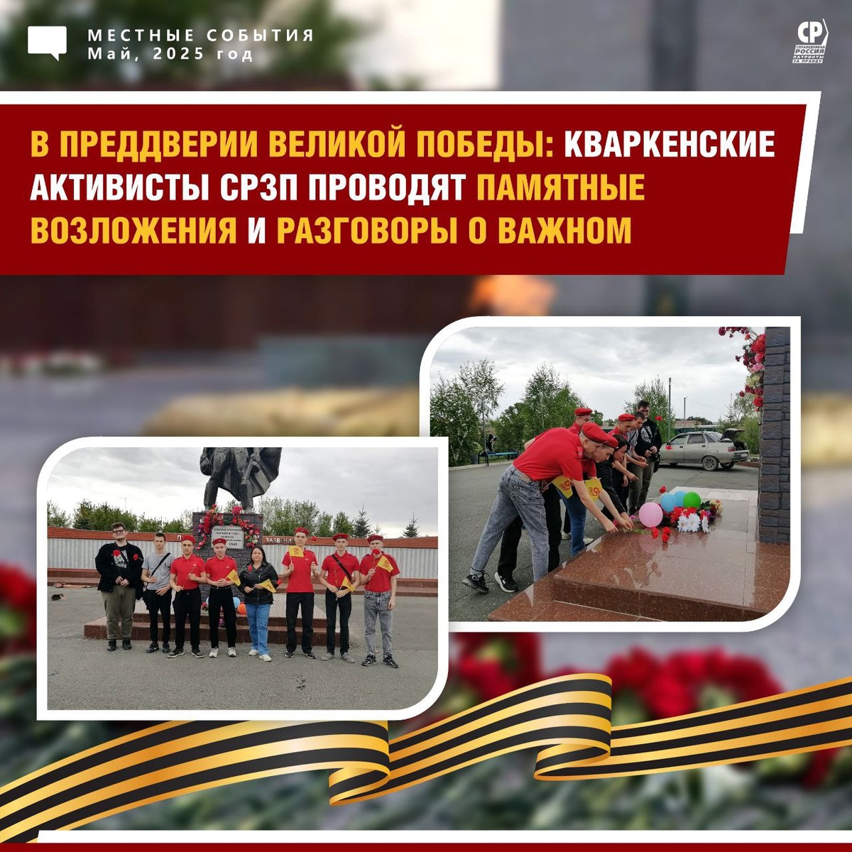🤍 В преддверии Великой Победы: Кваркенские активисты СРЗП проводят памятные возложения и «Разговоры о важном