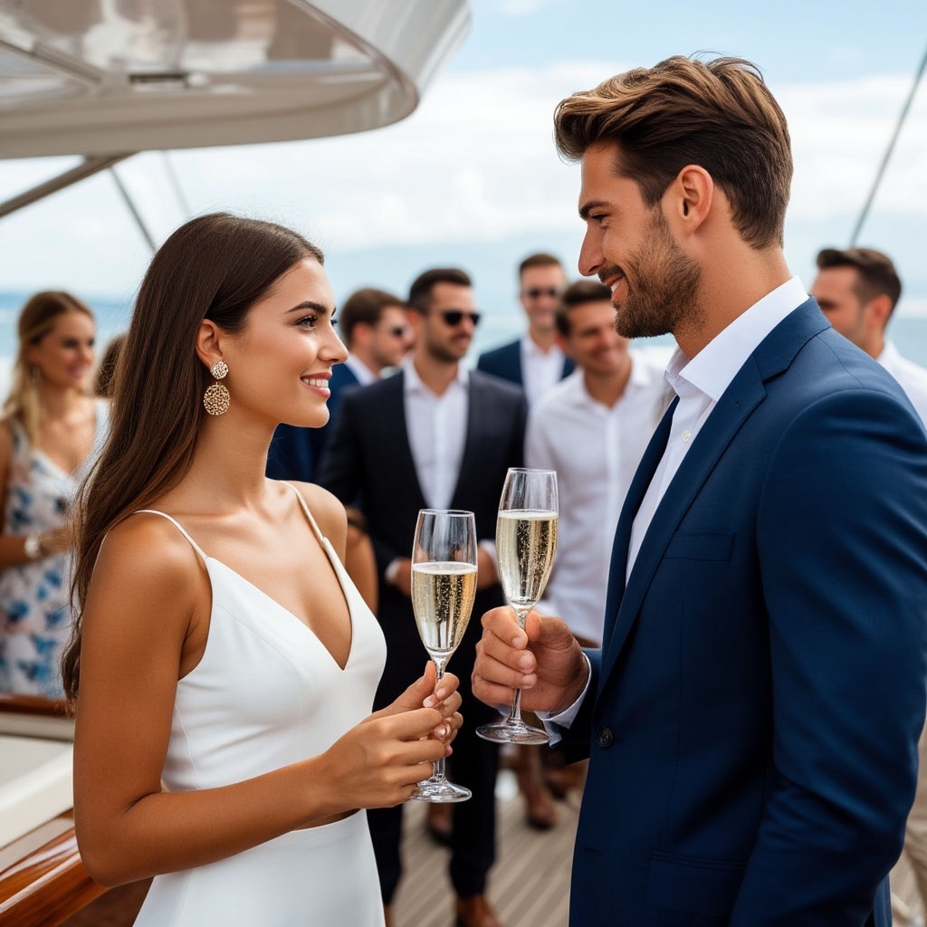 Илона взяла бокал искрящегося шампанского и направилась к краю палубы, чтобы насладиться видом на мерцающий горизонт. В этот момент к ней приблизился мужчина, словно высеченный из гранита – высокий, мускулистый, с брутальной аурой. "Вам не скучно здесь одной?" – прозвучал его глубокий голос. Илона обернулась и узнав в нем хозяина этой плавучей обители роскоши. "О нет, просто захотелось немного уединения", – ответила она, стараясь скрыть волнение.