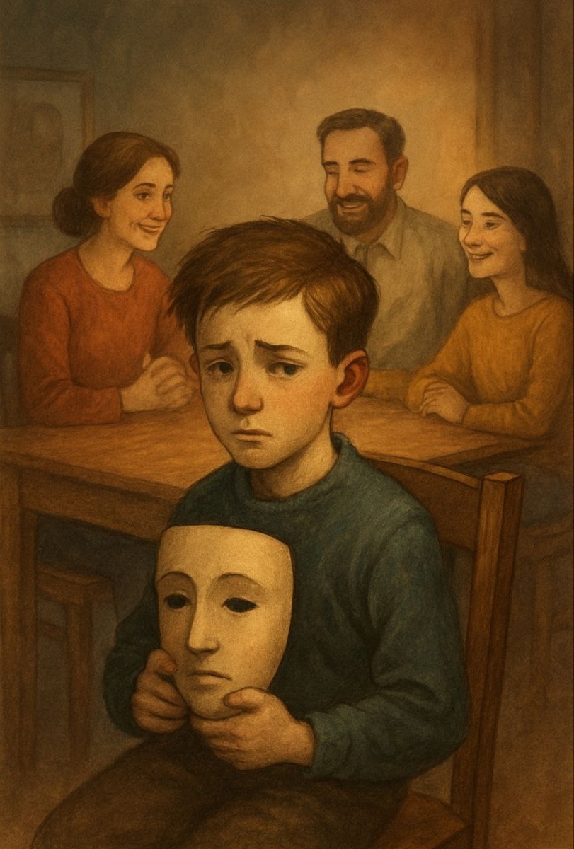 🕯 Откуда берётся самозванец? Это история не совсем про маску, а, скорее, про раннее приспособление. Иногда это начинается даже совсем тихо. Ни катастроф, ни травм. Ребёнок растёт в семье, где, казалось бы, всё хорошо: никто не кричит, не бьёт, не унижает. Но атмосфера как будто слегка настороженная. То ли из-за маминых невыговоренных разочарований, то ли из-за папиной тревожной сдержанности, то ли из-за неведомого, но постоянного напряжения, которое всё время витает в воздухе, как перед грозой. И вот, ребёнок, тонкий, внимательный, чуткий.. начинает настраиваться. Не потому что его заставляют. А потому, что так безопаснее. Он подбирает слова, интонации, старается не натворить лишнего, угадывает настроение. Он незаметно учится быть удобным, предсказуемым, аккуратным. Хорошим в своём соответствии. В какой-то момент он понимает: если быть собой, то непонятно и труднопредсказуемо, как это примут. Особенно, если родителям была присуща эдакая эмоциональная волатильность в восприятии ре
