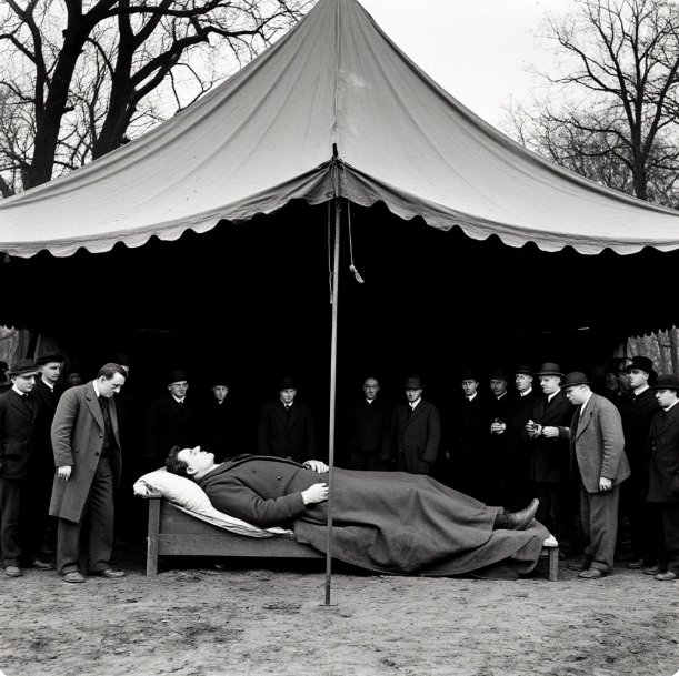 А доктор получив разрешение начинает своё представление, он показывает сомнамбулу Чезаре, якобы он спит уже 23 года и просыпается только по воле доктора и обладает способностью предсказывать будущее. Некий молодой человек по имени Алан спрашивай, сколько ему жить, и получает ответ - до рассвета.