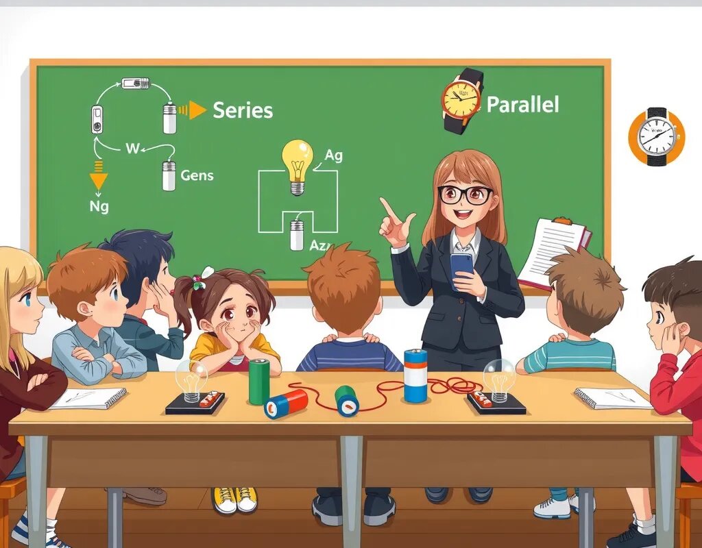 ✔ Наш Telegram-канал с новостями, подписывайтесь: 👉 Учись Легко Представь, что ты строишь цепь, как деревянный забор, где каждый столбик — это проводник. В последовательном соединении все элементы цепи соединены один за другим, как вагончики поезда. Что это даёт? Это соединение чаще всего встречается в простых схемах, например, в батарейках для игрушек. Если в последовательном соединении все элементы идут друг за другом, то в параллельном соединении каждый элемент подключен отдельно, как параллельные линии. Представь, что у тебя есть несколько лампочек, и к