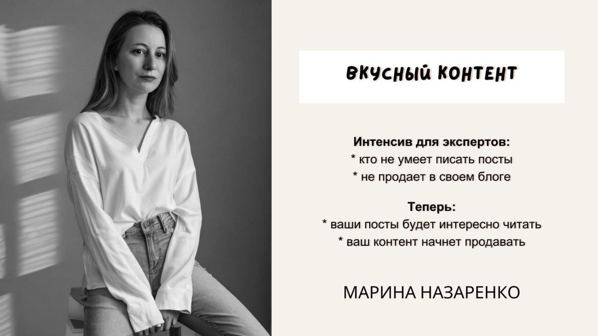 Как эксперту за 21 день научиться писать интересный контент и продавать в своём блоге. Пост для тех экспертов: ❌ кто потерял надежду и не может собрать отклики и заявки на свои услуги. ❌ кто не понимает, где достать смыслы и ценности ❌ кто боится, что останется без денег в следующем месяце Читать дальше только тем, кто хочет: ✅ влюблять в себя через посты ✅ с легкостью соединять жизненные истории со своим продуктом ✅ писать один пост за 15 минут Специально для вас я создала интенсив "Вкусный контент", пройдя который ваши посты начнут продавать. Что будет: 1⃣ узнаете, какие посты цепляют 2⃣ какие офферы бывают и где их применять 3⃣ где достать карту смыслов и что транслировать в блоге 4⃣ где брать идеи для постов 6⃣ базовые и продвинутые техники, как писать с юмором 7⃣ что такое контентная воронка 8⃣ формула продающих постов Если вы долго думали, то сегодня тот самый день. Пришло время изменить свой канал и влюбить в него свою аудиторию! Интенсив длится 21 день. Плюс 7 дней поддер