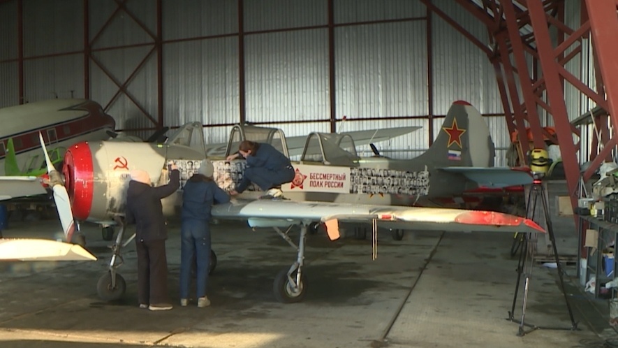 Уже традиционно девятого мая «Бессмертный полк» пройдет среди облаков. Советские солдаты, участники специальной военной операции встанут в единый строй в небе над Югрой. Пилотажная группа «Барсы» вышла на финишную прямую в подготовке к шествию. На фюзеляжи легендарных самолетов наносят лица тех, кто так отважно сражался с врагом и завоевал Победу. В шествие среди облаков над Югрой летчицы отправятся с портретами и своих героев. «Мой прадедушка воевал под Сталинградом. Его забрали на войну в 1941 году. Он провоевал год под Сталинградом, потом получил ранение в ногу», — рассказывает Полина Байдюк, летчица пилотажной группы «Барсы». Всего предстоит обклеить портретами семь самолетов: Як-52 и 54, Ан-2. Около четырех тысяч фотографий воинов-победителей в Великой Отечественной войне. На одном из бортов — лица уже современных героев, героически погибших солдат — участников специальной военной операции. «Самый главный патриотический праздник, в который надо отдавать долг и шествовать, общаться