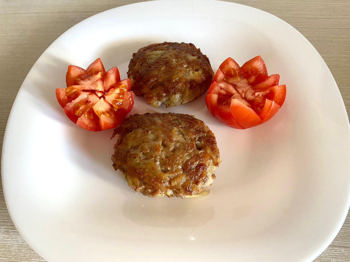 Все гениальное - просто! Эти котлеты доказывают, что кулинарные шедевры можно создавать из минимального набора продуктов. Простота приготовления, максимум вкуса! Они идеальны для новичков на кухне и опытных хозяек, которые хотят быстро и вкусно накормить семью. Подавайте их с любимыми гарнирами: свежими овощами или хрустящим салатом. Такие котлеты станут отличным дополнением к семейному обеду или ужину с друзьями. Для приготовления 7 котлет вам понадобятся: — 400 г фарша; — 2 крупных сырых картофеля; — приправа для фарша, перец, соль. Процесс приготовления: Смешайте фарш, натёртый картофель, специи. Хорошо перемешайте смесь и сформируйте котлеты. Обжарьте котлеты с двух сторон до появления золотистой корочки, а затем накройте крышкой и готовьте ещё несколько минут. Я теперь готовлю только такие котлеты! Вы заметили они без лука и яйца. В этом рецепте этого ненужно. А вкусно так, что хочется еще! Приятного просмотра быстрого приготовления 👉