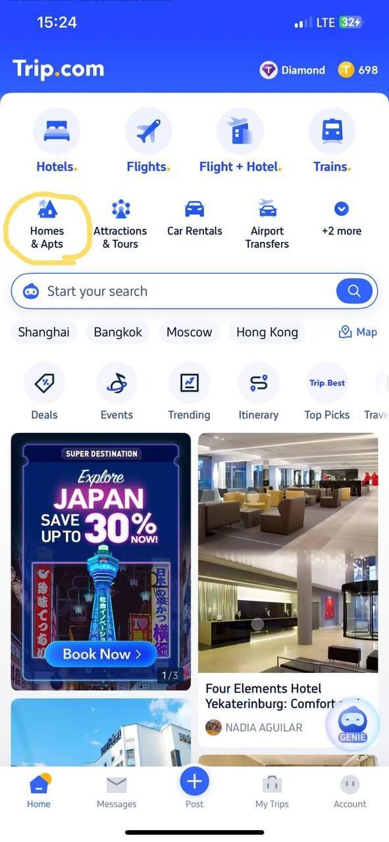 С тех пор, как Airbnb стал сложно доступен для россиян, я искала альтернативы. Нашла — и делюсь. На Trip.com появилась новая функция — Homes & Apts (она пока в бета-версии, работает только в приложении). Это прямой конкурент Airbnb: можно бронировать апартаменты, дома и дизайнерские отели по всему миру. И — самое главное — оплата работает с российскими картами. 🔹 Скачайте Trip.com по [этой ссылке]