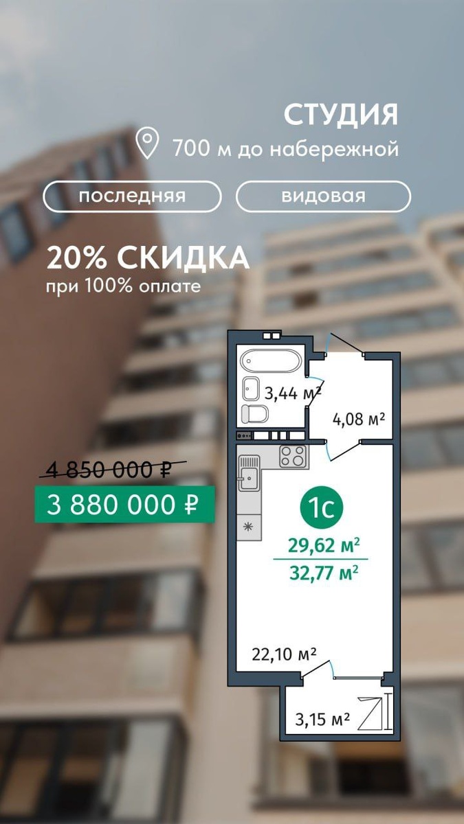 #ТЮМЕНЬ 🔔 СКИДКА 20% при 100% оплате — ТОТАЛЬНАЯ ВЫГОДА в OK Salut 🔔 В продаже осталась последняя студия! И её можно купить по выгодной цене — 3 880 000 ₽. Скидка 20% действует на все оставшиеся апартаменты в OK Salut. 📍Готовый объект, красивые виды — всё, что нужно, чтобы клиент принял решение уже сейчас. 📱89923566884 Алсу Рафисовна
