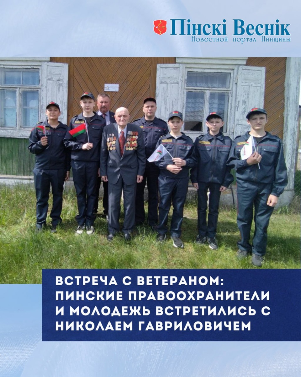📌В преддверии 80-летия Победы заместитель начальника Пинского РОВД по идеологической работе и кадровому обеспечению подполковник милиции Владимир Шукало, представители сельисполкома и воспитанники военно-патриотического клуба «Припятский дозор» посетили участника войны Николая Гавриловича из деревни Морозовичи.