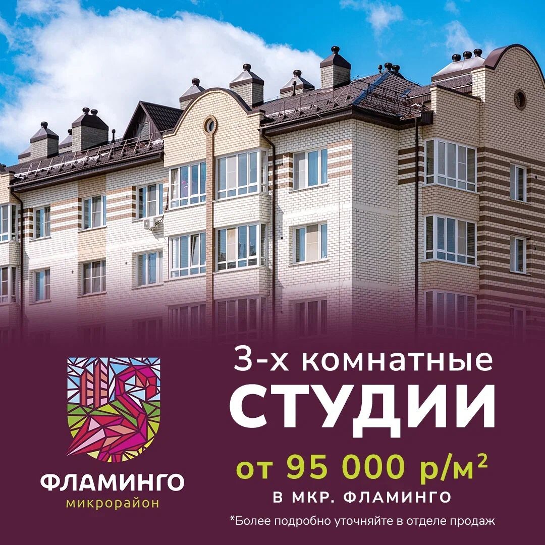 3-х комнатные студии от 95000 р/м2 в микрорайоне Фламинго