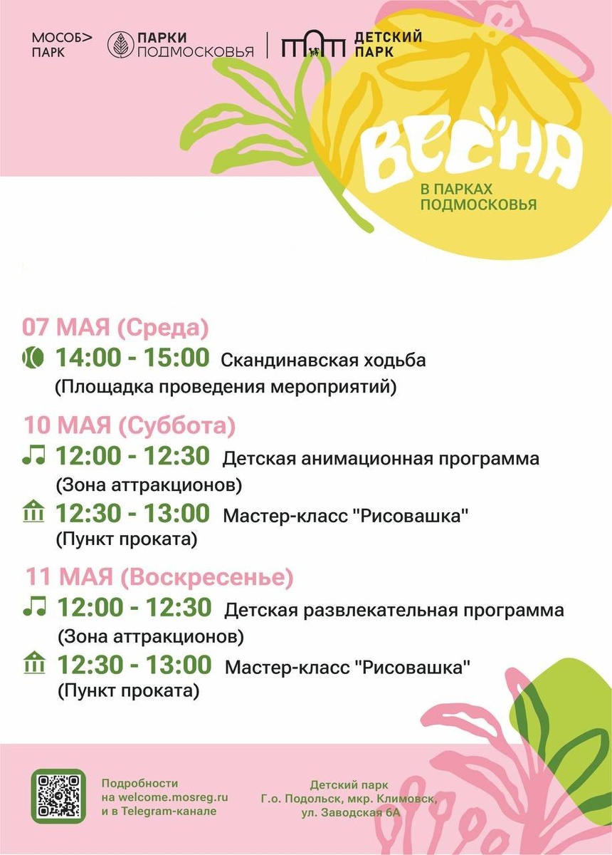 ✨ Мероприятия в Детском парке на этой неделе Приглашаем в Детский парк 🌳🌲 🚫 Возраст: 0+ 📆 11.05.2025 🏢 Детский парк культуры и отдыха 📍 г. Подольск, мкр. Климовск, ул. Заводская, 6а 💰 Вход свободный❗️ #webПодольск ✅ Мероприятия Подольск https://dzen.ru/id/66ed500f7b5671493eca3fd6 http://vk.com/podolsk_events http://dzen.ru/podolsk_events