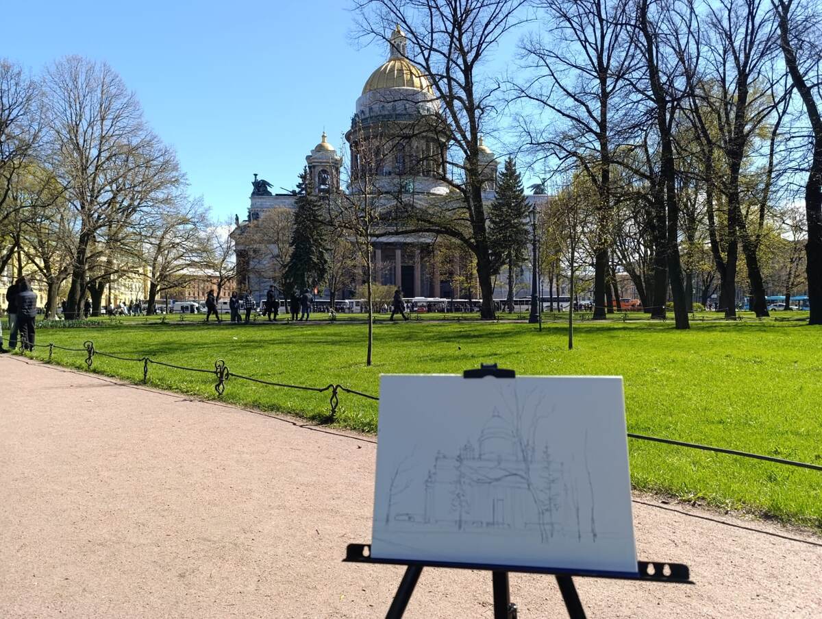 акварелью. Вот как раз зарисовку Исаакиевского собора и дальнейшую