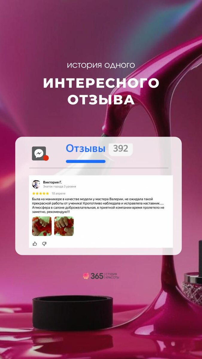 Гостья осталась в таком восторге, что перепутала имена наставника и мастера. 😍 Рады представить — мастер Татьяна Алферова, звездочка 365, с потрясающим и огромным опытом работы — 14 лет. Татьяна прошла переподготовку под наставничеством топ-мастера Валерии, и радует наших гостей прекрасными результатами вот с такими отзывами. Также весь май у мастеров Тани Алферовой и Даши скидка - 20% на маникюр и педикюр! 🫰 Записаться к Татьяне Алферовой на ближайшие даты можно! Записаться можно любым удобным способом: 👉🏻 Сообщение в Whats'app https://wa.me/79663654477 👉🏻По телефону +79663654477 👉🏻Онлайн запись https://n286444.yclients.com/