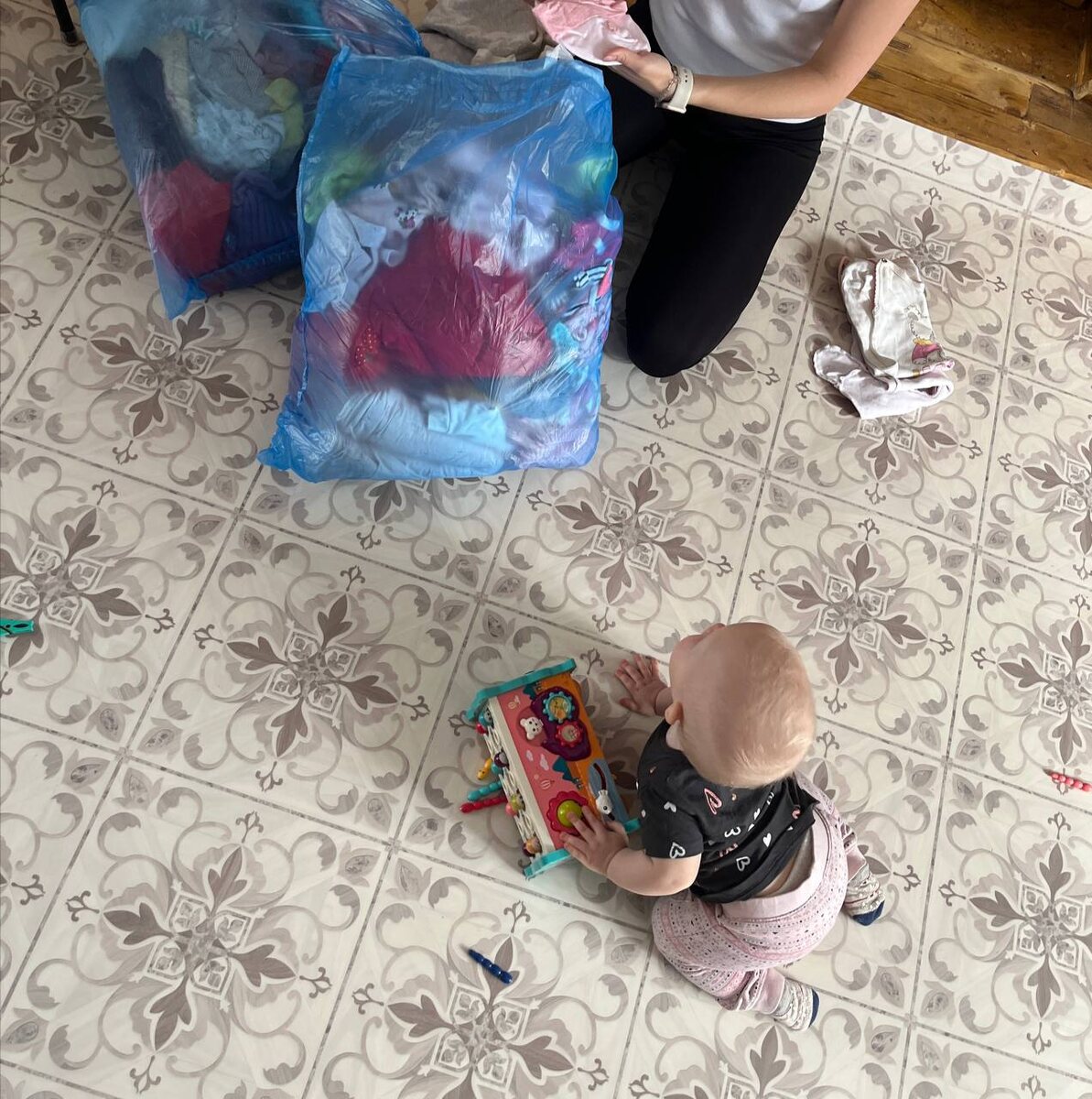 Разбираем запасы вещей для будущих детей, что-то выкинуть, что-то отложить.
