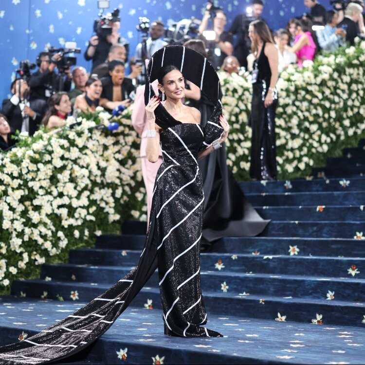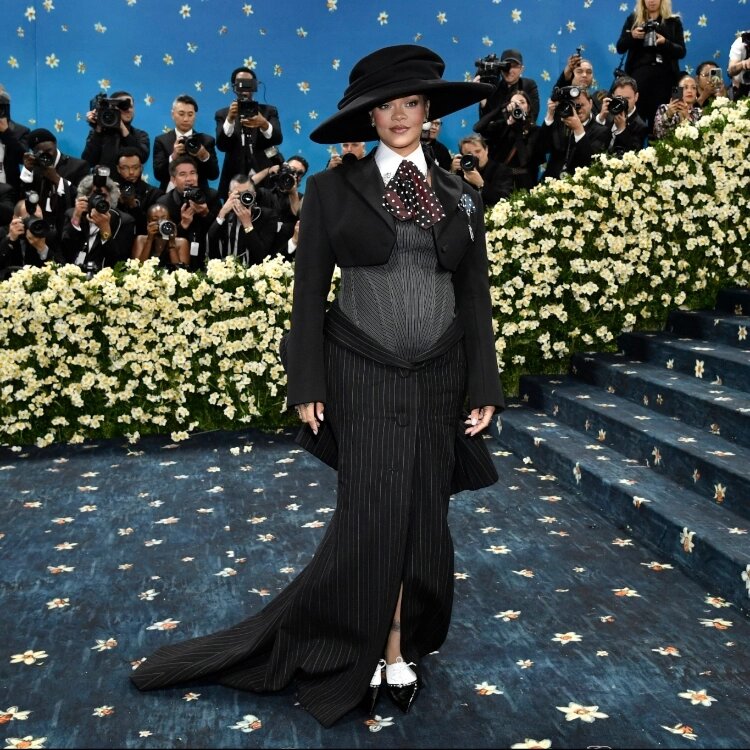 В Нью-Йорке состоялось одно из главных событий мира моды — Met Gala 2025. В этом году мероприятие было посвящено теме «Superfine», исследующей вклад чернокожих людей в развитие мировой моды. Рианна, как всегда появившись после 10 вечера, представила публике не только свой образ, но и неожиданную новость. Певица продемонстрировала костюмный ансамбль от Marc Jacobs, который включал шерстяной пиджак, приталенную юбку с бантом-бастом и атласный галстук в горошек. Серый корсетный боди позволил заметить, что исполнительница и A$AP Rocky ожидают третьего ребенка. Образ дополнили туфли с цепочками, головной убор от Marc Jacobs x Stephen Jones и украшения Cartier. Деми Мур появилась в платье от Thom Browne, стилизованном под мужской галстук. По данным Vogue, наряд содержал более 1,4 миллиона бусин и потребовал свыше 7600 часов работы для изготовления. Памела Андерсон подтвердила свою приверженность естественному образу, прибыв без макияжа в сверкающем голубом платье от Tory Burch. 57-летнюю акт