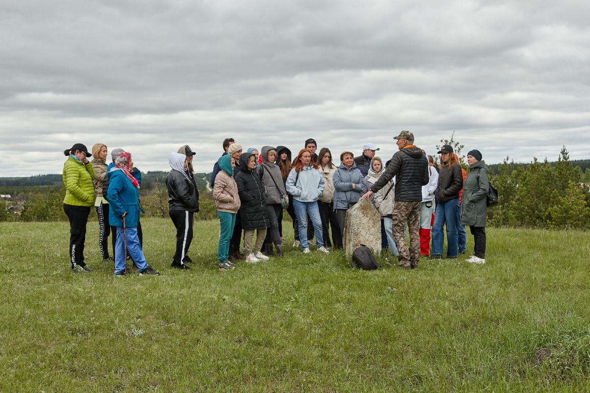 Нашу экскурсию Роман предлагает начать с посещения одного примечательного места, где установлен так называемый хранитель села Смолькино "Бабай-камень", он же "Бабай Тюале", он же Камень предков.