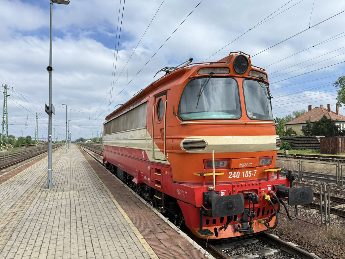 Стеклопластиковый электровоз 240 105-7 (ламинатка) в тупике вокзала Пюшпёкладань в Венгрии