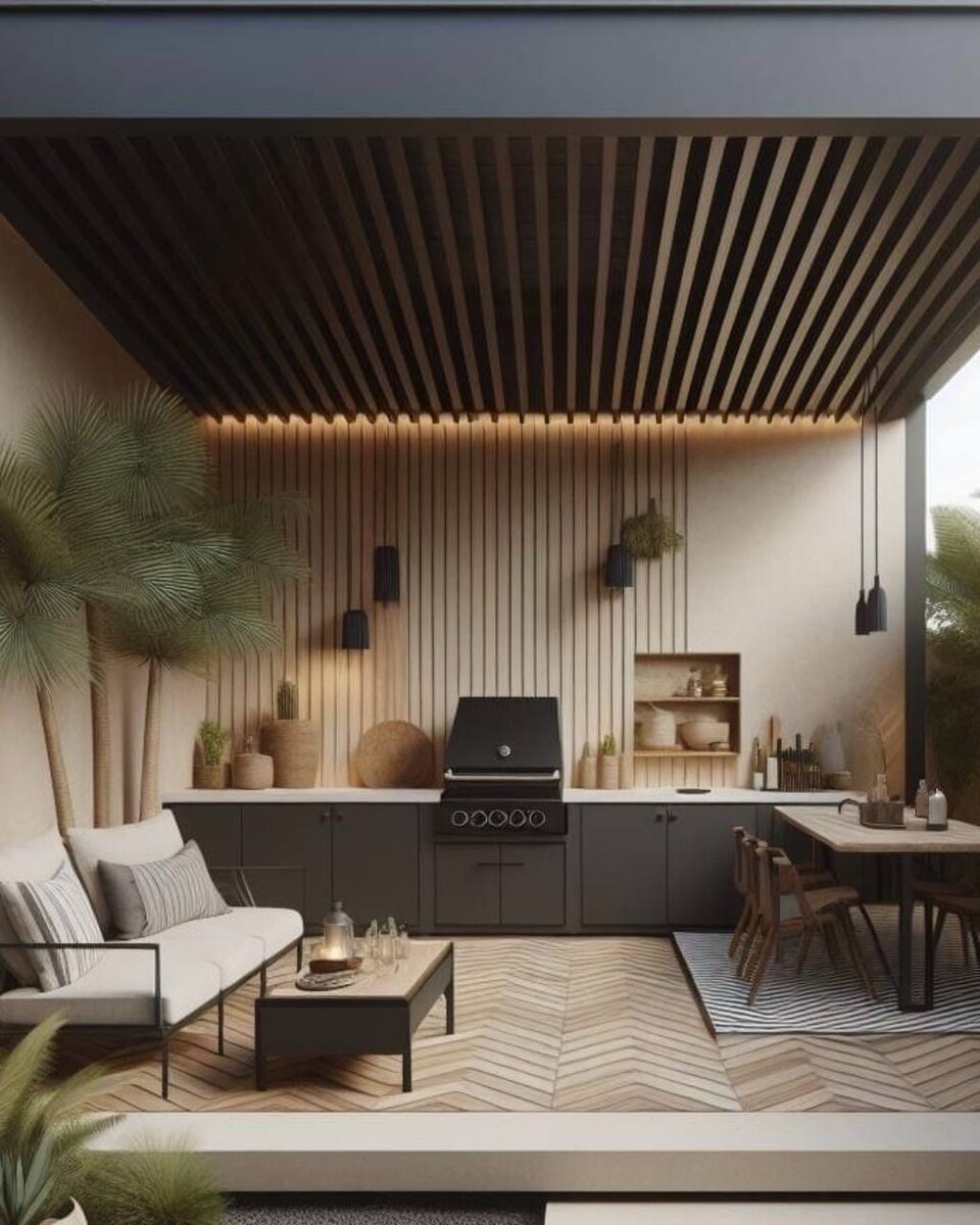 📌 Уличная кухня: как создать интерьер, который не боится погоды. С первыми тёплыми днями хочется проводить больше времени на свежем воздухе: ☕️ завтракать на веранде, 👩🍳 готовить на летней кухне, 👋 принимать гостей под открытым небом. 🔜 Но прежде чем заказывать кухню для веранды или открытого пространства, важно учитывать один нюанс: На улице - свои законы. Температура меняется по несколько раз в день. Влажность, ветер, сквозняки, открытые окна и двери — всё это требует совсем других материалов, чем те, что используются в интерьере. _________ Корпус: выносливость - ключевой параметр. 🔠 Что точно не подойдёт: ❌ Обычная ДСП: не выдержит ни повышенной влажности, ни резких перепадов температуры. ❌ Массив дерева: быстро деформируется, трескается и требует постоянного ухода. 🔠 Лучшие решения: ✅ ЛДСП или МДФ с влагостойкой пропиткой - прочные, надёжные, устойчивые к внешним воздействиям. ице - свои Фасады: красота, устойчивая к окружающей среде 🔠 Не рекомендуем: ❌ Плёнку ПВХ: