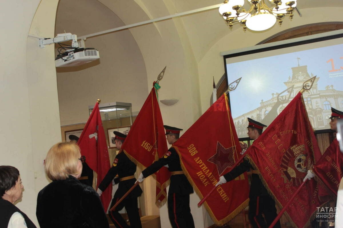 В ответ на пост 🎖🚩Нацмузей РТ показал знамена Великой Отечественной войны Учащиеся Казанского суворовского военного училища вынесли пять знамен времен Великой Отечественной войны, хранящихся в Нацмузее. Это были. 🔹Знамя Победы (точная историческая копия), 🔹боевое знамя 1160-го стрелкового Минского ордена Суворова полка, 🔹боевое знамя 908-го артиллерийского полка, 🔹шефское знамя, врученное 512-му стрелковому полку 146-й стрелковой дивизии трудящимися Высокогорского района ТАССР, 🔹воинское знамя 280-го артиллерийского полка 146-й стрелковой дивизии, полученное «от трудящихся Бугульминского района». @tatmediaofficial