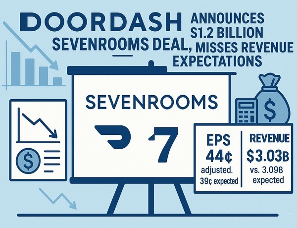 Американский сервис по доставке еды Doordash объявил о покупке платформы управления бронированиями SevenRooms за $1,2 млрд, одновременно представив финансовый отчет за первый квартал 2025 года, в котором выручка не оправдала ожиданий аналитиков. После публикации новостей акции компании упали более чем на 5% в ходе предварительных торгов. Согласно данным LSEG (ранее Refinitiv), финансовые итоги Doordash за первый квартал 2025 года выглядят следующим образом: Несмотря на превышение прогнозов по прибыли на акцию, выручка оказалась ниже ожиданий, что, вероятно, стало причиной негативной реакции инвесторов на фоне крупной сделки по приобретению. Doordash сообщила, что приобретение SevenRooms завершится во второй половине 2025 года. SevenRooms — это платформа из Нью-Йорка, которая помогает ресторанам и отелям управлять данными о бронированиях, включая аналитику, CRM и персонализацию взаимодействия с клиентами. В компании считают, что покупка SevenRooms усилит технологические возможности Door