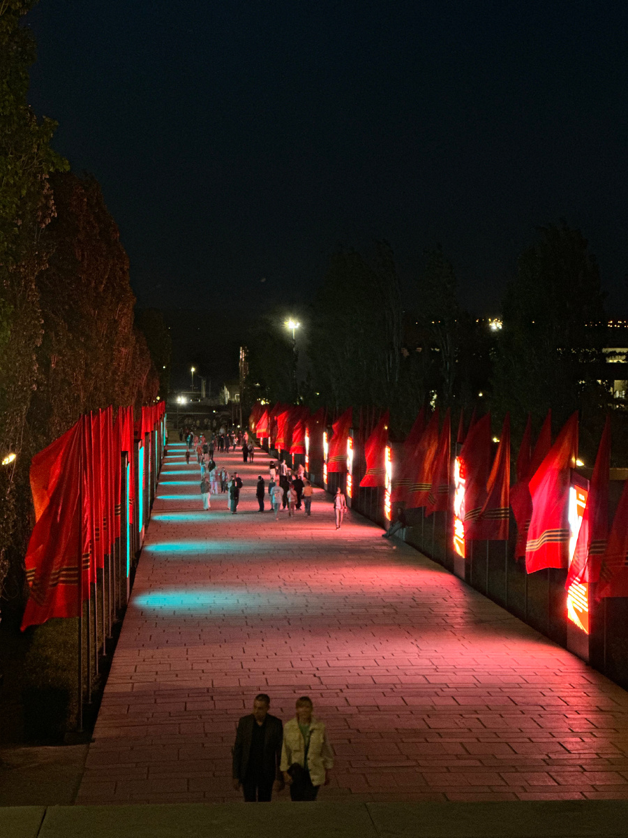 Памятник-ансамбль «Героям Сталинградской битвы» в Волгограде - один из главных мемориальных комплексов нашей страны. 9 мая 2025 года наша Родина отмечает 80-летие Победы в Великой Отечественной войне. Это наш самый главный и всенародный праздник, и комплекс на Мамаевом кургане украсили необычайно красиво. 5 мая на главной высоте России прошла репетиция концерта "Песни военных лет" в исполнении симфонического оркестра под управлением Юрия Башмета. А с 7 мая на Мамаевом кургане проходят инсталляции «Свет великой Победы.» Предлагаю вам фотоотчёт о том, как выглядит Мамаев курган в праздничные дни. Аллея пирамидальных тополей украшена флагами и световыми табло. Площадь "Стоявших насмерть". Скульптура солдата подсвечена золотом и бронзой. Стены-руины. Красным цветом горит знамя и сердце погибшего бойца. Репетиция симфонического оркестра под управлением Юрия Башмета. Зал Воинской славы. Площадь Героев. Храм «Всех Святых». Главный монумент "Родина-Мать зовёт!" Если вам понравила