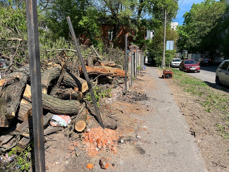 Рабочие начали устанавливать забор вдоль тротуара на улице Ватутина в Курске. Он закроет свалку, в которую превращается пустырь на месте снесенного дома. Два года назад на улице Ватутина снесли расселенный дом. Остался старый гнилой деревянный забор, секции которого падают на тротуар, и аварийные деревья. На минувшей неделе их спилили. Но порубочные остатки оставили на месте. Накануне 9 Мая улица, названная в честь генерала армии Героя СССР Николая Ватутина, представляет собой удручающее зрелище. Власти отреагировали на возмущение курян. Но убирать распиленные стволы и ветви никто не спешит. Нашли другое решение — малопривлекательный пейзаж просто закроют забором из металлопрофиля, который сейчас устанавливают на тротуаре. Рабочие пояснили, что их попросили установить забор максимально близко к прежнему, но это невозможно из-за фундамента. Поэтому новое ограждение пришлось вынести на пешеходную часть. Судьба самого пустыря тоже вызывает вопросы. Когда аварийный дом сносили, появилась и