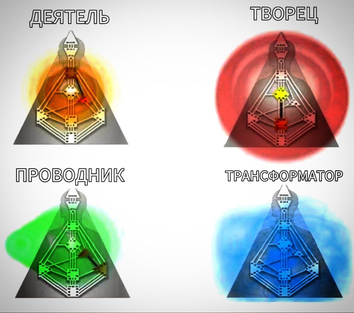 ТИПЫ ЭНЕРГОЛИЧНОСТИ 🤑Каждый человек имеет свою энергетическую личность, которая сама по себе уникальна и несёт в себе ту самую программу, по которой он должен жить. Это обязательное условие, иначе сход со своего пути сулит неудачами, несчастьем, фрустрацией и разочарованием. Я вам помогу рассмотреть и вкратце разобрать эти самые энерголичности. Всего их пять: 😦Творец 😮Амбициозный творец 😲Проводник 😴Деятель 🤤Трансформатор ТВОРЕЦ Для него важно не быть инициатором в чём-то, а ждать внутреннего побуждения для какого-либо действия (через интуицию или ощущения в теле). Если не идёт своим предначертанным, то впадает в депрессию, агрессию и гнев. АМБИЦИОЗНЫЙ ТВОРЕЦ Важна свобода и разнообразие. Способен управлять несколькими процессами одновременно. Эффективность приходит, когда деятельность выбирается сердцем, а не тогда, когда "надо". Важно доверять своей интуиции. ПРОВОДНИК Могут спокойно распознавать энергию других типов. Мощные управляемые эмпаты. Взаимодействие с другими люд