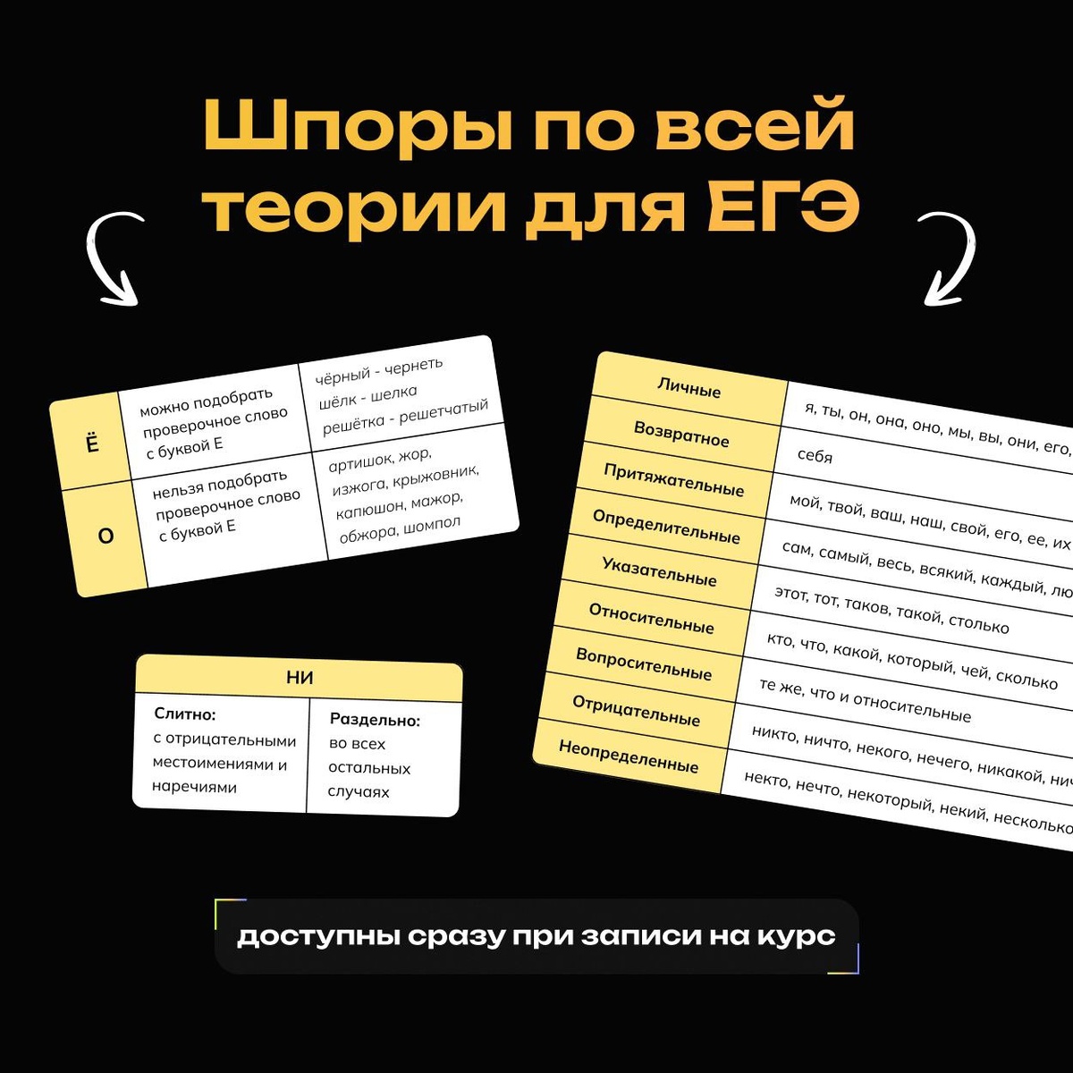 Поэтому ВСЕ шпоры со всеми главными правилами, ловушками и сложными случаями уже доступны для ребят, записавшихся на Интенсив