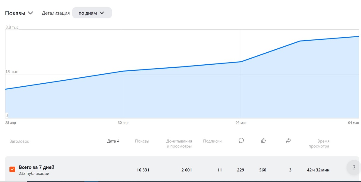 Неделя на Дзен. 28 апреля - 4 мая. Показы, дочитывания, доход