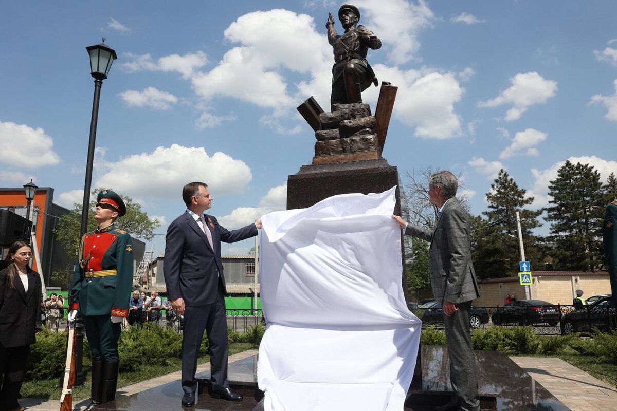 В Ростове открыли памятник легендарному Гукасу Карапетовичу Мадояну Улица его имени была, а теперь есть и бронзовый образ бесстрашного командира: в летней офицерской форме, с пистолетом в руке, он словно снова ведёт своих бойцов в атаку. Таким его запомнила история — решительным, отважным, тем, кто вернул Ростову свободу. 📍 Памятник установлен в начале улицы Мадояна. 📷 тг-канал Александра Скрябина Подпишись на КП - Ростов | Прислать Новость