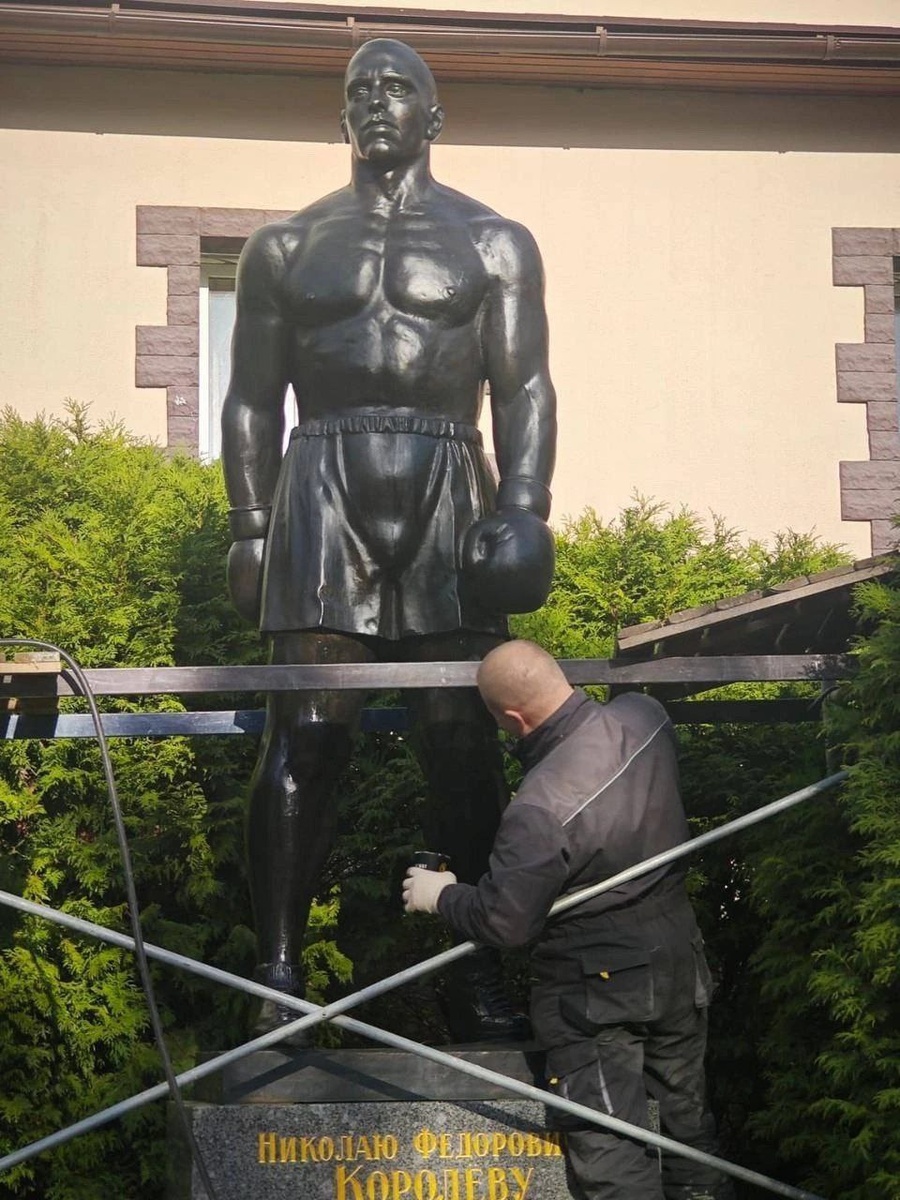В нашем городском округе отреставрировали памятник выдающемуся боксёру-Н.Ф. Королёву! В предверии 80-й годовщины Победы в Великой Отечественной войне обновили памятник четырёхкратному абсолютному чемпиону СССР, девятикратному чемпиону СССР, заслуженному мастеру спорта СССР по боксу-Николаю Фёдоровичу Королёву! Николай Фёдорович также был участником Великой Отечественной войны! Он воевал в диверсионной группе, в партизанском отряде специального назначения, которым командовал полковник-Дмитрий Николаевич Медведев. Этот отряд был заброшен осенью 1941 года в тыл врага и действовал на территории оккупированных Брянской, Могилевской и Смоленской областей. Находится памятник на территории спортивной школы олимпийского резерва "Витязь" имени А.В. Поветкина".