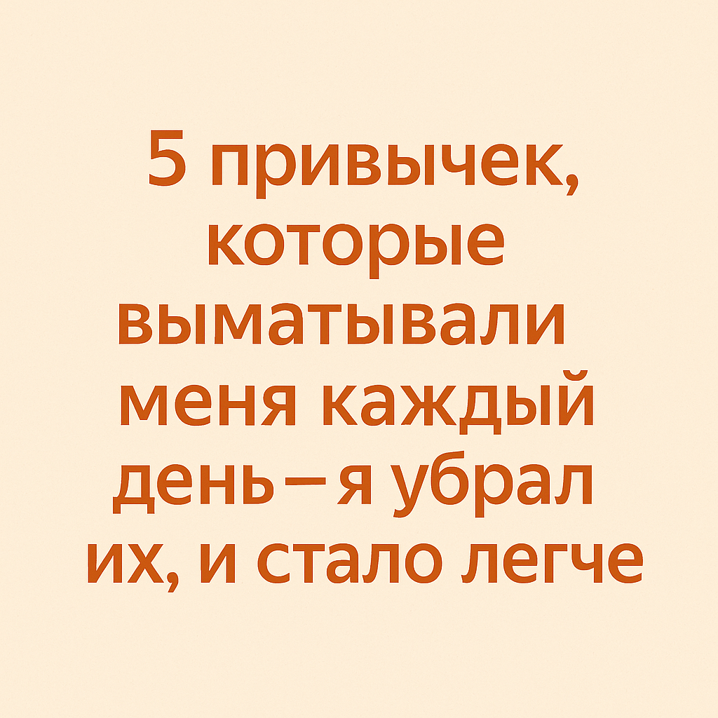 Не всегда для энергии нужно пить кофе или уезжать в отпуск. Иногда достаточно избавиться от привычек, которые изо дня в день крадут твои силы. Вот 5 вещей, которые я убрал — и почувствовал облегчение уже через неделю: Иногда чтобы стало легче — нужно не добавлять, а убирать. Начни с малого.
