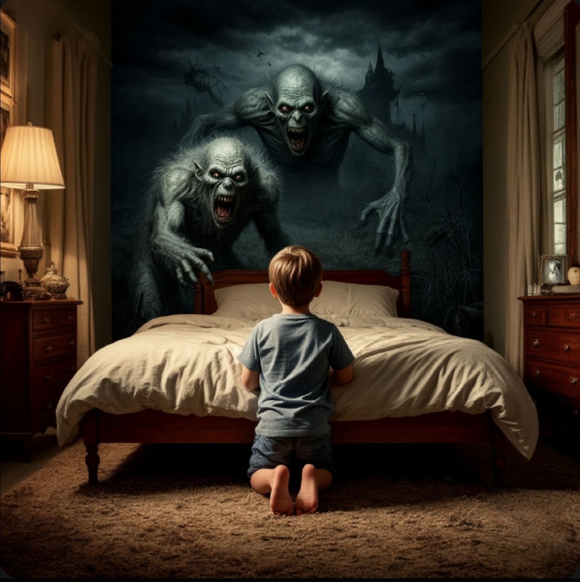 Я уже заканчивал ритуал отхода ко сну, когда сын дрожащим голосом произнес: — Пап... Проверь, нет ли монстров под кроватью? Улыбнувшись его детским страхам, я опустился на колени и заглянул в темное пространство под кроватью. Ледяной ужас сковал меня, когда в темноте я увидел: - Моего сына, прижавшегося к пыльному полу - Его широко раскрытые от страха глаза - Дрожащие губы, которые прошептали: "Папа... Там кто-то лежит в моей кровати..." Я медленно поднял голову, глядя на "сына", который только что попросил меня проверить под кроватью. Он лежал, укрытый одеялом, и смотрел на меня — с той же улыбкой, что и всегда перед сном. Только теперь я заметил: - Слишком широкую улыбку - Слишком много зубов - И глаза... которые совсем не были глазами моего ребенка P.S. Сейчас я пишу это, запершись в ванной. Слышу, как "он" ходит по коридору и напевает колыбельную. Той самой мелодии, которой я никогда не учил своего сына...