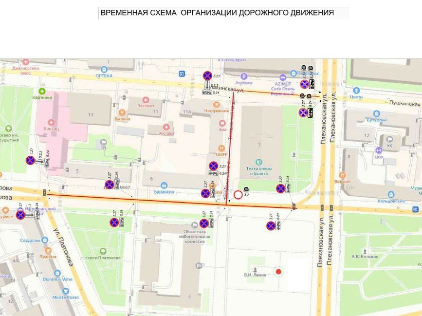 В связи с проведением в театре оперы и балета мероприятий ко Дню Победы на прилегающих улицах будут действовать временные ограничения. С 18:00 6 мая до 16:00 7 мая введут запрет парковки на площади Ленина и ул. Пушкинская: изменения затронут участки от ул. Плехановская до ул. Кирова и от ул. Плехановская до Театрального проезда. Также на Театральном проезде 7 мая будет действовать запрет движения с 8:00 до 16:00.