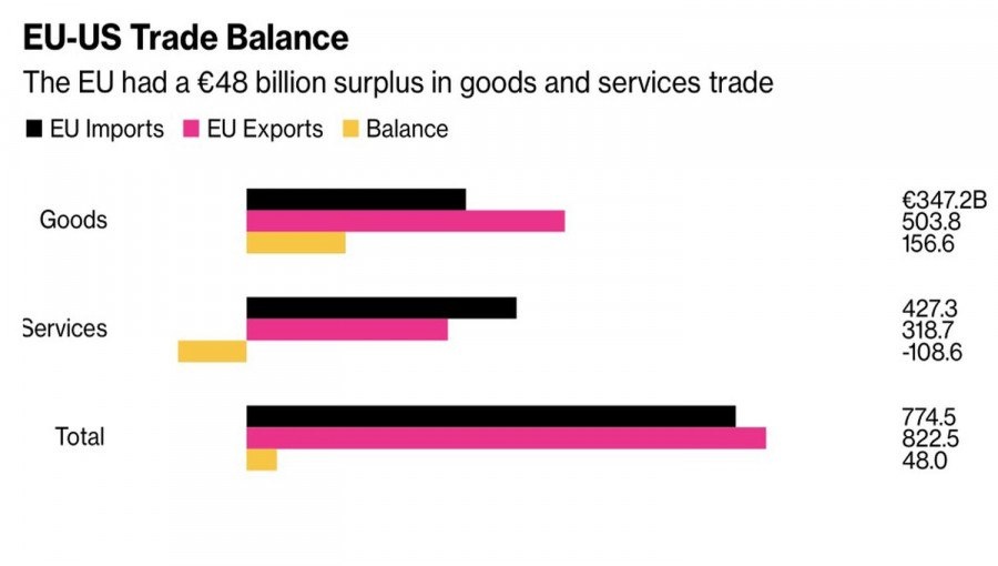 Согласно инсайду Bloomberg, Европейский союз готовит план B. Если торговые переговоры Брюсселя с Вашингтоном провалятся, он намеревается ввести пошлины на импорт из США на €100 млрд. Проект предполагаемых мер возмездия будет передан государствам-членам ЕС на исходе недели к 9 мая, дискуссии продлятся в течение месяца. Похоже, Дональд Трамп своей 90-дневной отсрочкой дал своим противникам время для подготовки ответной атаки.