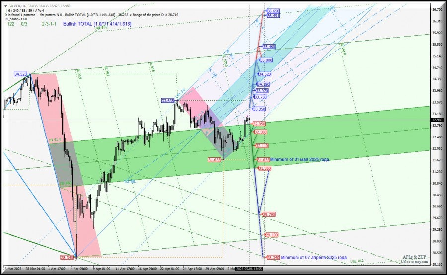 Движение Spot Silver-h4 с 07 мая 2025 года продолжится исходя из отработки и направления пробоя диапазона: