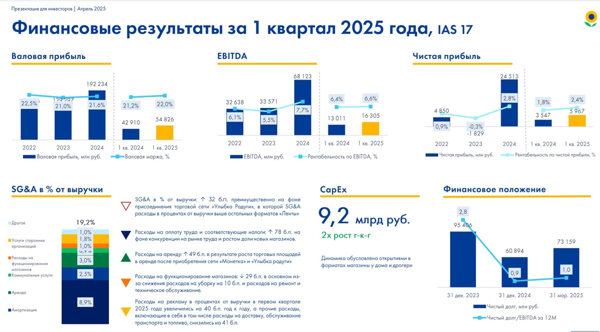 🛒 Лента ($LENT) – Продолжает приятно удивлять своими результатами. Отчет за 1 кв. 2025 г.
