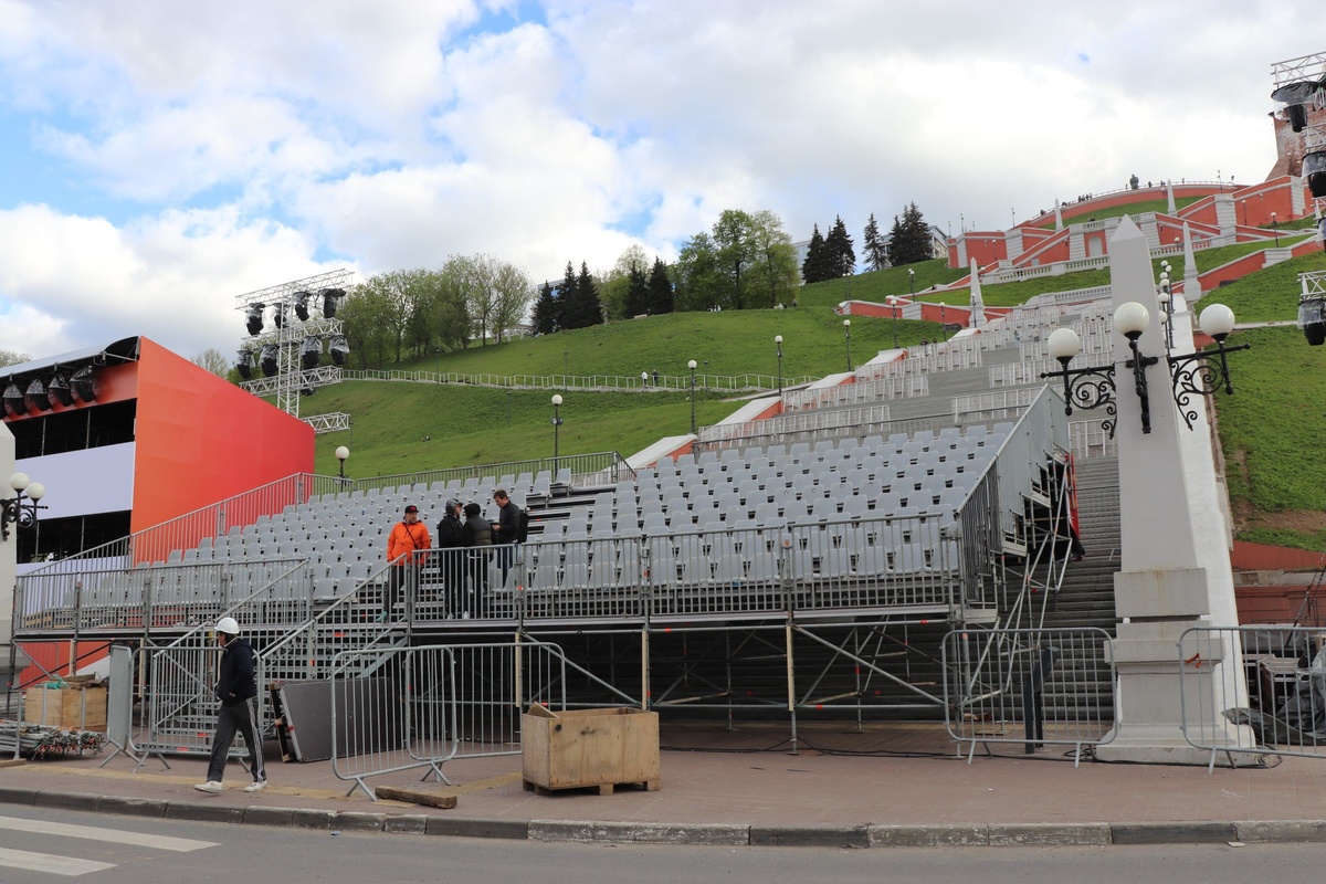На объекте культурного наследия устанавливают новые конструкции - на этот раз сиденья для зрителей шоу, которое готовится ко Дню Победы.