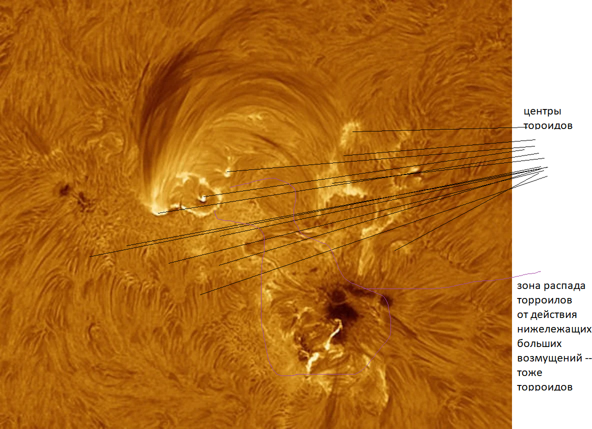Это и стало предметом моего обсуждения с ИИ. А поводом послужило недавнее сообщение, о странных явлениях в стратосфере Земле - сопряженных с мощными вспышками на Солнце. А дело в том, что еще до вспышек, примерно за 10 минут - стратосфера Земли возмущалась. Что было непонятно, исходя из сегодня принятых моделей функционирования Солнечной активности. Но эта моя старая работа, называла другой источник вспышек - внутренний источник - мощный тороид, всплывший от ядра Солнца и удерживаемый слоем внешних тороидов (ТКЗ), выстилающих внешний слой Конвекционной Зоны (КЗ) Солнца (рис 1). Этот снимок показывает сплошной слой тороидов, плотно выстилающих КЗ Солнца. Таким образом, новость о странной предварительной активности атмосферы Земли ,относительно времени вспышки , имела ответом эту модель активности Солнца, где в глубине Солнца, в ядре- образуется мощное возмущение ( я назвал его - ПТ), типа "кипения котла", и начинает свое движение к поверхности Солнца, за счет своей более низкой плотности - просто всплывая. Энергией данного образования служит термоядерная энергия ,которая подпитывает эту структуру , процесс идет там то усиливаясь, то ослабевая. Около поверхности ПТ, уже расширенный до около 100 т км в поперечнике, представляющий из себя тороид с мощным магнитным полем, упирается в слой ТКЗ, который постоянно растаскивает энергию ПТ. И ,в зависимости от ориентации вращения ПТ, его массы и состава - он или угасает или находит энергию, чтобы вырваться на поверхность, сметая, на время, какой-то тороид из слоя ТКЗ. И тогда мы видим вспышку, которая ++ канализируется магнитным полем. Но перед этим, был мощный подъём активности ПТ, по-сути гигантский взрыв . Он то и дает мощный поток нейтронов и гамма лучей (2-20 МЭВ). Этот процесс взрыва -распределен во времени и часто заканчивается прорывом или на поверхность звезды -или внутрь.. Тогда ,по телу звезды, идут мощные ударные волны. Которые, конечно же, могут быть легко измерены.