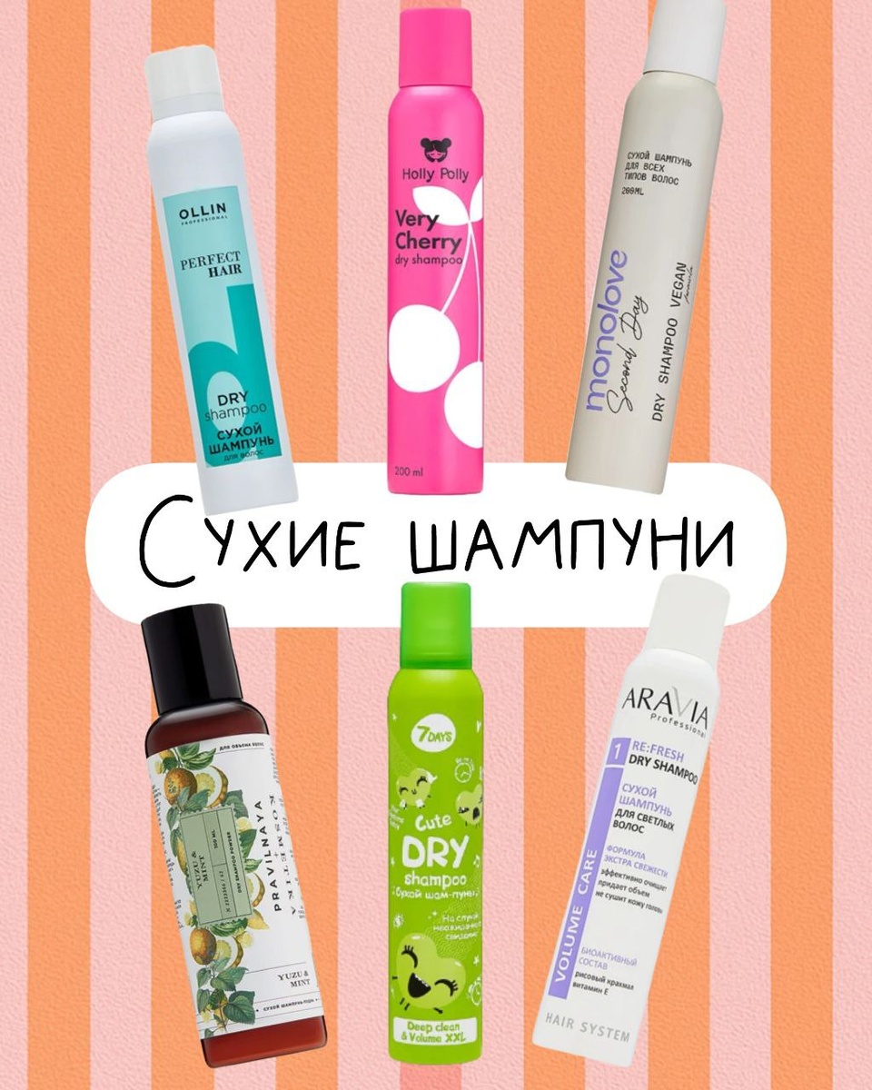 Чем ближе лето, тем меньше хочется липкой укладки с тоной лака, и тем больше я обожаю сухие шампуни Прямо сейчас в закупке и делюсь, что к чему, чтобы вы не пугались больших составов на обратной стороне флакончика Что внутри сухого шампуня? Это не шампунь в обычном смысле, а смесь абсорбентов, которые впитывают жир: • Крахмал (рис/кукурузный) — натуральный и мягкий • Silica — синтетический, но очень эффективный • Каолин, сода, оксид цинка — матируют, подсушивают, контролируют сало Плюс: • Силикаты и аэросил — чтобы пудра не слипалась • Ароматизаторы — чтоб пахло как вишневой жвачкой, а не жирочком • Ментол, экстракты, пигменты — у некоторых брендов, попадаются даже с уходом или тонировкой Формы бывают разные: • Аэрозоль (легче всего) • Порошок (натурально, но возни больше) • Крем-пудра (точечно, удобно) Из наших брендов рекомендую: — MonoLove Bio: без претензий, работает — Aravia: есть для блондинок и брюнеток — Holly Polly: пахнет вишнёвыми конфетами — Ollin Professional: професс
