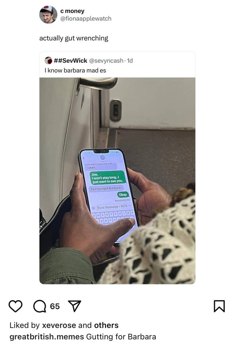 сделаем вид, что не замечаем всех этих людей, кто исподтишка* фоткают чужие сообщения but thanks to them we can thoroughly learn colloquial and slang phrases gut-wrenching extremely distressing A heartbreaking scene in a movie where a character suffers a devastating loss. Reading a harrowing (heartbreaking) true story that leaves you feeling emotionally drained. to gut cause (someone) to feel extremely upset or disappointed gutting for Barbara чувствую всю боль за Барбару es enough said *stealthily