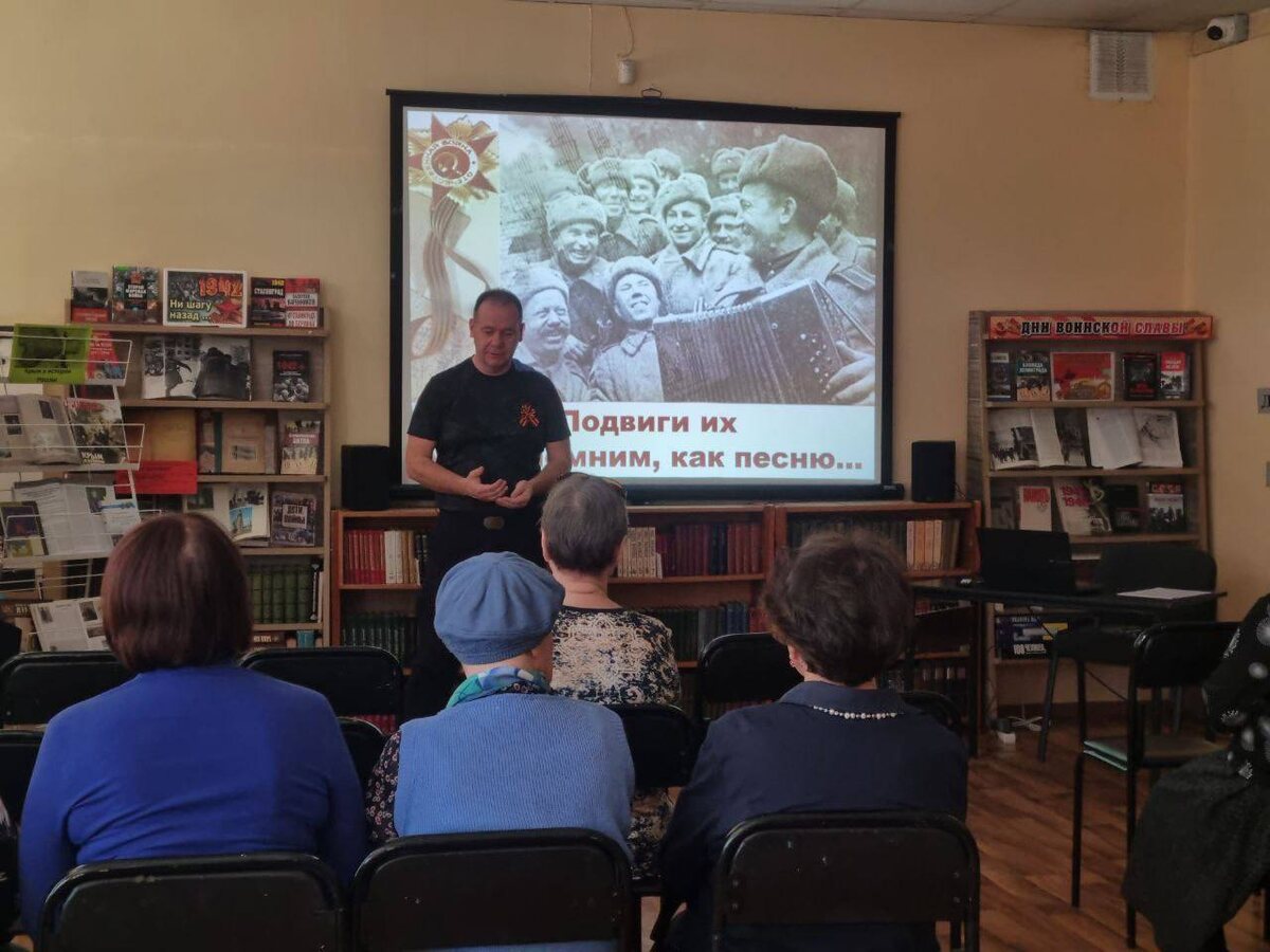 Сегодня в библиотеке №5 было историческое музыкальное путешествие «Подвиги их мы запомним как песню», посвященное Дню Победы